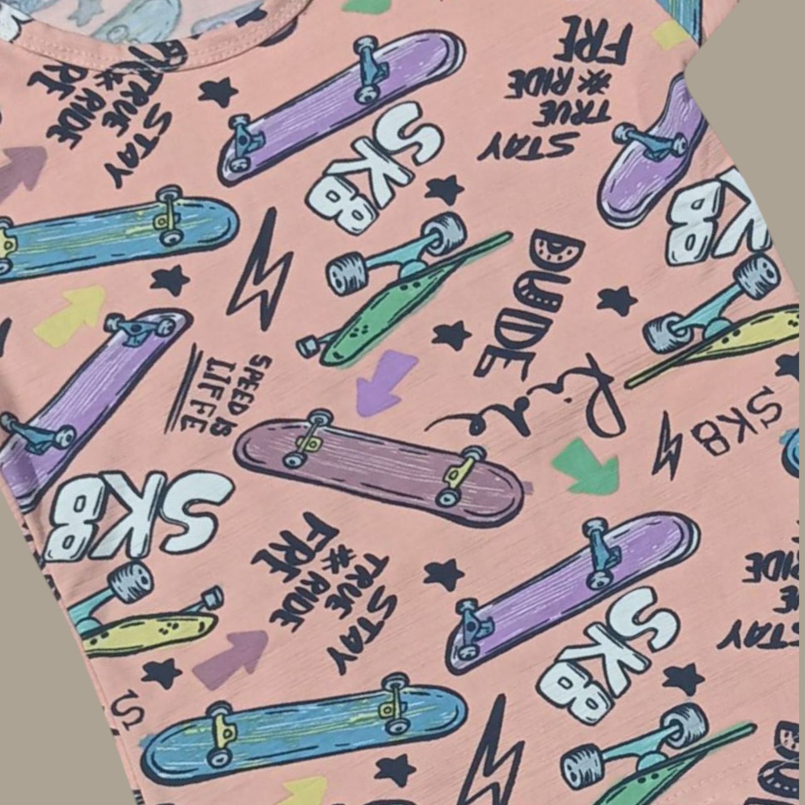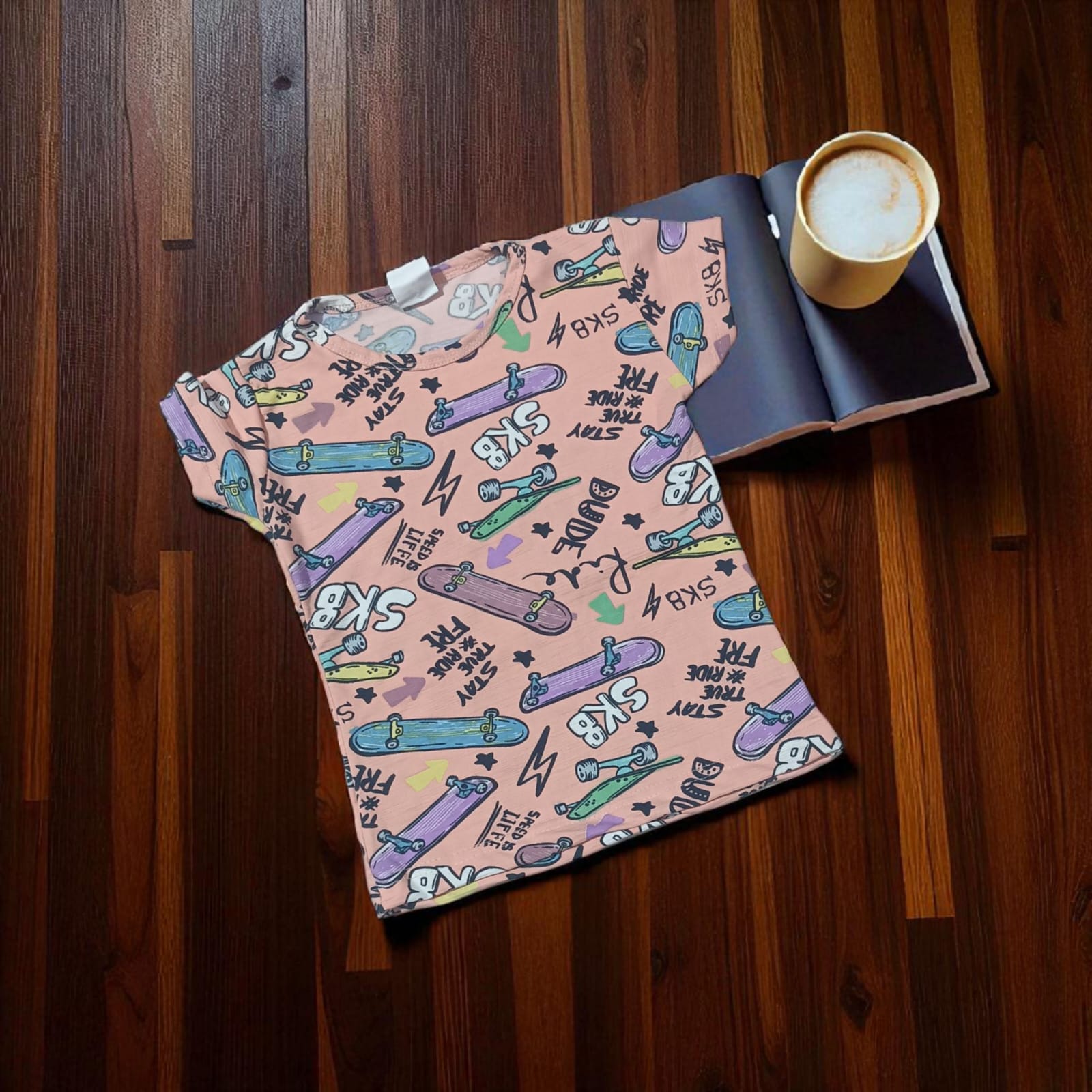"Add a touch of style and comfort to your child’s wardrobe with this stylish crush fabric kidswear set by Thulukas, crafted for boys and girls aged 1 to 5 years. The pack includes three trendy colors – peach, lavender, and sky blue – with playful skate and doodle prints that bring fun to everyday wear.